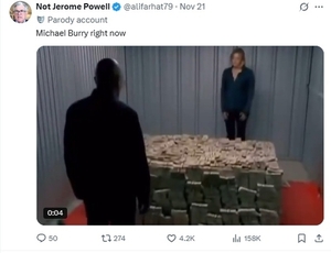 영화 '빅숏'의 주인공 마이클 버리의 전망처럼 지난주 엔비디아(NAS:NVDA) 등 빅테크(거대 기술기업) 주가가 조정을 받으면서 버리가 인터넷상에서 밈으로 인기를 끌고 있다.23일(현지시간) 비즈니스인사이더에 따르면 버리는 엔비디아 3분기 호실적 발표 후 사회관계망 X(옛 트위터)를 통해 엔비디아 칩의 내용연수와 다른 인공지능(AI)회사와의 순환거래 등을 지적했다.엔비디아 실적 발표 이후 시간외거래서 주가가 5% 이상 상승하자 일부 시장 참가자들은 버리의 비관적 전망을 조롱했으며, AI 열풍에 맞서는 그의 도전을 우스꽝스럽게 여