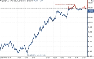 미국 달러화 가치가 강보합을 나타냈다.달러는 연방준비제도(연준·Fed)의 정책 금리 인하 기대감 속 미국 추수감사절 연휴를 사흘 앞두고 박스권에서 횡보했다. 거래량도 적었다.연합인포맥스(화면번호 6411)에 따르면 24일 오후 4시 현재(이하 미 동부시각) 뉴욕 외환시장에서 달러-엔 환율은 156.832엔으로, 전장 뉴욕장 마감 가격 156.390엔보다 0.442엔(0.283%) 상승했다.달러-엔 환율은 장중 157엔 선을 살짝 넘어서기도 했다. 그러나 일본 정부의 개입 경계감에 이내 156엔대로 돌아갔다.아오조라은행의 모로가 아
