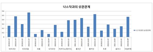 (서울=연합인포맥스) 정필중 기자 = 비트코인 등 우량 코인뿐만 아니라 알트코인까지 나스닥과의 상관관계가 더욱 강해지고 있다.