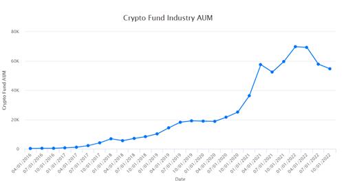 블록체인 리서치 업체 크립토펀드리서치에 따르면 크립토 펀드 산업 AUM(운용규모)은 지난 10월 기준 546억 달러에 이르렀다.