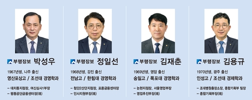 (서울=연합인포맥스) 이수용 기자 = 광주은행은 임원급 부행장보 4명을 발탁하는 등 임원 인사를 단행했다고 27일 발표했다.