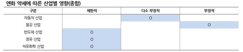 자동차 산업 역시 엔화 약세에 따라 '다소 부정적'인 영향을 미칠 것으로 봤다.