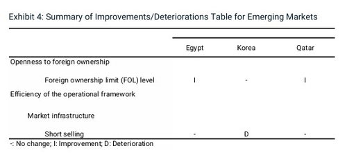 외환시장 새벽 2시까지 연장, 외국 법인 투자자 등록 과정 간소화, 옴니버스 계좌를 이용한 결제 보고 폐지 등 한국 정부가 MSCI 선진국 편입을 위해 실행한 다양한 조치들에 대해서는 "본격적으로 시행되면 국제 기관투자자들과 함께 효과를 평가할 예정"이라고 말했다.