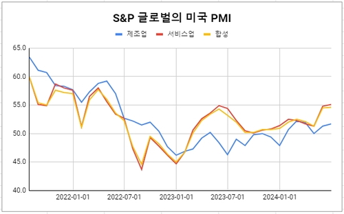S&P 글로벌이 산출하는 미국의 구매관리자지수(PMI)가 최근 서비스업을 중심으로 고개를 들고 있는 모습은 주목할 대목이다. 시장은 공급관리협회(ISM)의 PMI를 더 중시하지만, ISM의 서비스업 PMI도 지난달 '서프라이즈'를 선사한 바 있다. (지난 21일 송고된 '美 6월 S&P글로벌 서비스업 PMI 예비치 55.1…26개월래 최고치(상보)' 기사 참고)
