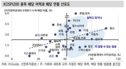 이에 주주환원을 잘하고 있는 은행과 증권, 필수소비재, 미디어, 호텔·레저나 더 잘 할 수 있는 업종인 자동차와 화장품에 주목할 만하다고 추천했다.