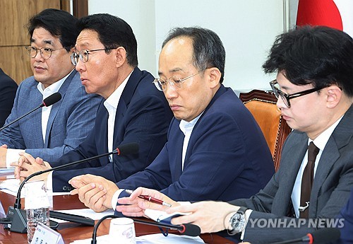 이날 회의에는 당에서 한 대표와, 추경호 원내대표, 김상훈 정책위의장 등이 참석했다.
