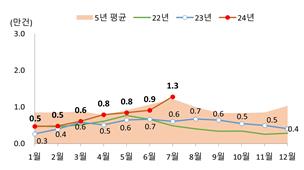 전월 대비로도 22.5% 늘어난 수치로, 최근 5년간 7월 평균 거래량보다도 5.0% 많다.
