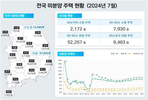지난달 말 기준 전국 미분양 주택은 7만1천822호로 전월 대비 3.0% 감소했으며 지방 미분양 주택이 5만7천833호로 80.5%를 차지했다.