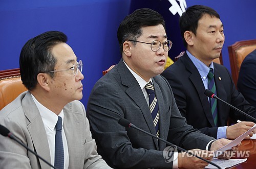 민주당 박찬대 원내대표는 "(4일) 의원총회를 통해서 하나의 의견으로 모으기에는 어려움 있을 것이라는 판단이 들어서 지도부에 그 시기와 결정을 위임해 달라고 요청했다"며 "내일부터 국정감사가 진행되기 때문에 국감 전에 (입장이) 결정된다는 것은 살짝 지나가지 않았나 싶다"고 말했다.