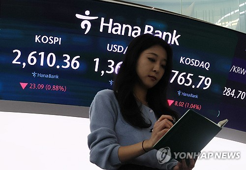 이날 코스피 지수는 전장 대비 23.09p(0.88%) 내린 2,610.36에 코스닥 지수는 전 거래일보다 8.02포인트(1.04%) 내린 765.79에 마감했다. 2024.10.16 uwg806@yna.co.kr