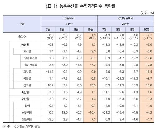 농축수산물 수입가격 전월보다 1.3%↑…석달 만에 플러스