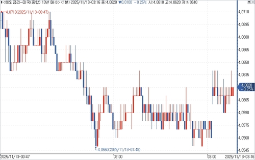 미국 재무부는 12일(현지시간) 오후 장 들어 실시한 420억달러 규모의 10년물 국채 신규 발행 입찰에서 발행 수익률이 4.074%로 결정됐다고 발표했다. 지난달 입찰 때의 4.117%에 비해 4.3bp 낮은 수준이다.