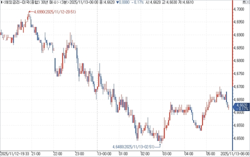 만기가 가장 긴 30년물 국채금리는 4.6610%로 4.10b 하락했다.