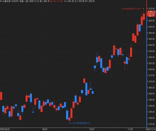 지난 9월 말 1,400원선 위에 안착한 달러-원 환율은 10월에 1,420원에서 1,440원대에 머물다가 이달 들어 가파른 오르막을 걷고 있다.