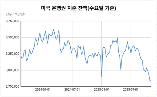 연준 데이터에 따르면, 지난 5일 기준 미국 은행시스템의 지준 잔액은 약 2조8천519억달러로 집계됐다. 시장이 주시했던 3조달러 선은 지난 9월 하순경 무너졌다.