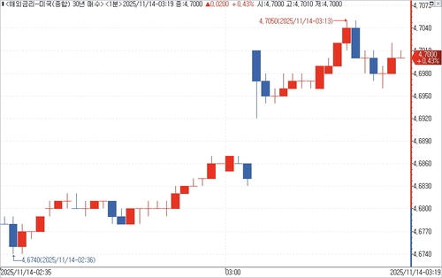미 국채 유통시장에서 30년물 수익률은 뉴욕 오후 1시 조금 넘어 입찰 결과가 나온 뒤 오름폭을 확대했다. 한때 4.7050%까지 올라 일중 고점을 기록했다.