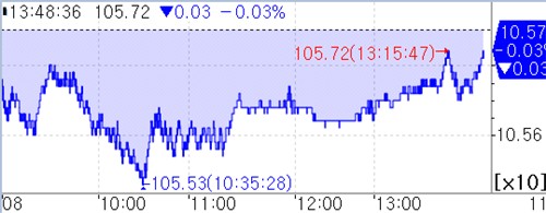 서울 채권시장에 따르면 3년 국채선물은 이날 오후 1시45분 현재 전일 대비 6틱 내린 105.69를 나타냈다.