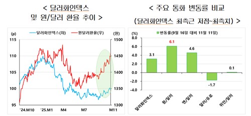 우선 미국 관세정책 불확실성이 지속되는 가운데 한미 후속 협상 지연, 정책 소송 등으로 외환시장 혼선이 확대되고 있다는 것이다.