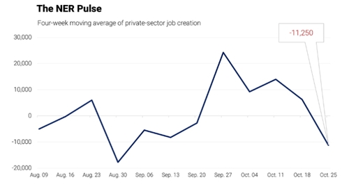 시의성 측면에서 고용정보기업 ADP가 최근 공개를 시작한 '주간' 민간고용 데이터도 계속 지켜볼 필요가 있다. ADP의 주간 민간고용은 4주 이동평균치 형식으로 매주 화요일 발표된다.