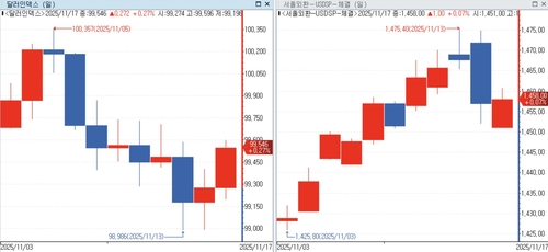전문가들은 글로벌 증시의 조정 국면이 아직 끝나지 않은 상황에서 미국 연방준비제도(Fed·연준) 위원들의 매파적 발언이 12월 기준금리 동결 전망을 가리키면서 달러인덱스를 밀어올리고 있다고 분석했다.