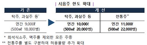 전통주의 경우 시음주 한도가 연간 9천ℓ에서 1만1천ℓ로 약 20% 확대된다.