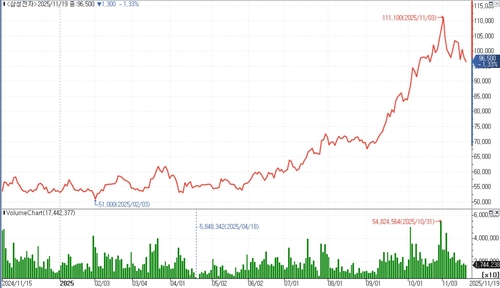 이 기간 주가는 82% 가까이 올랐다. 올해 3분기 간판 사업인 반도체를 중심으로 실적이 크게 개선되는 등 '인공지능(AI) 붐' 영향이 컸다.