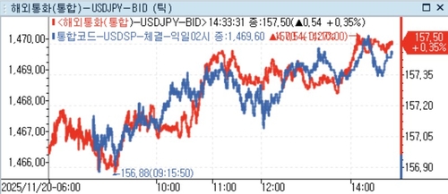 달러-엔 환율은 일본 외환당국 구두개입에도 157.54엔까지 고점을 높였다.
