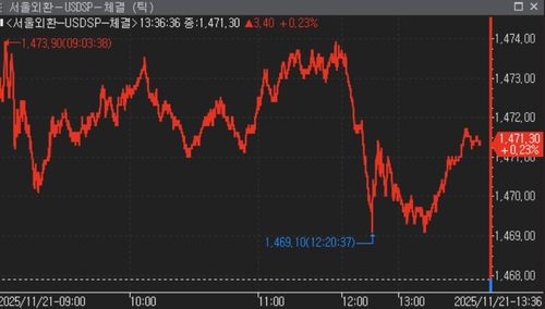 21일 서울 외환시장에서 달러-원 환율은 오후 1시36분 현재 전장대비 3.40원 오른 1,471.30원에 거래됐다.