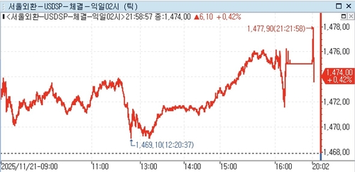 정규장 이후 런던장과 뉴욕장을 지나면서 달러-원 환율은 한때 1,477.90원까지 오르기도 했다.