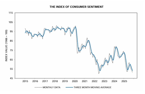 미시간대의 조앤 슈 소비자조사 디렉터는 "연방정부 셧다운(일시적 업무 정지)이 종료된 이후 중순 조사치보다는 약간 개선되긴 했다"면서도 "소비자들은 여전히 높은 물가가 지속되는 상황과 약해지는 소득에 대해 불만을 느끼고 있다"고 했다.