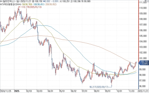 달러인덱스는 지난주 마지막 거래일 전까지 6거래일 연속 오름세를 탔다. 주간 종가 기준 100선을 웃돈 것은 지난 5월 중순 이후 처음이다.