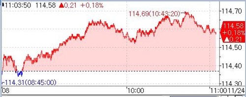 10년 국채선물은 22틱 상승한 114.59이었다.