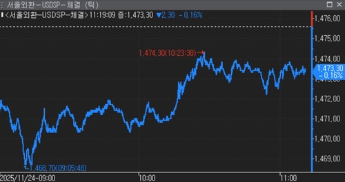 24일 서울 외환시장에서 달러-원 환율은 오전 11시19분 현재 전장대비 2.30원 하락한 1,473.30원에 거래됐다.