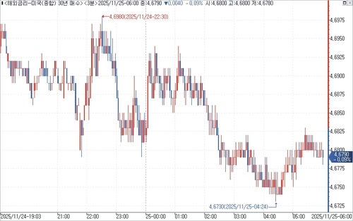 만기가 가장 긴 30년물 국채금리는 4.6770%로 3.80b 하락했다.