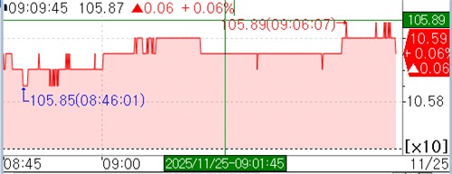 서울 채권시장에 따르면 3년 국채선물은 이날 오전 9시11분 현재 전일 대비 7틱 오른 105.88을 보였다.