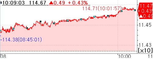 10년 국채선물은 45틱 상승한 114.63이었다.