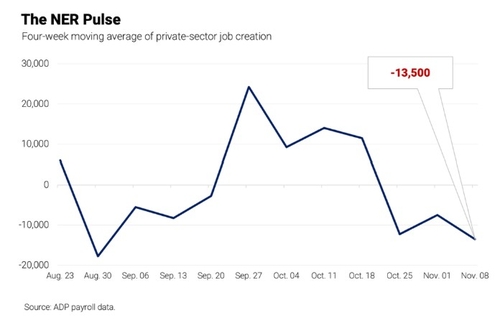 넬라 리처드슨 ADP 수석 이코노미스트는 (추수감사절) 연휴 기간에 접어들면서 일자리 창출이 지연되거나 줄어들 수 있다면서 소비자 파워에도 여전히 의문의 여지가 있다고 설명했다.