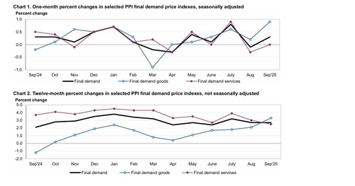 25일(현지시간) 미 노동부에 따르면 9월 PPI는 계절 조정 기준으로 전달 대비 0.3% 상승했다.