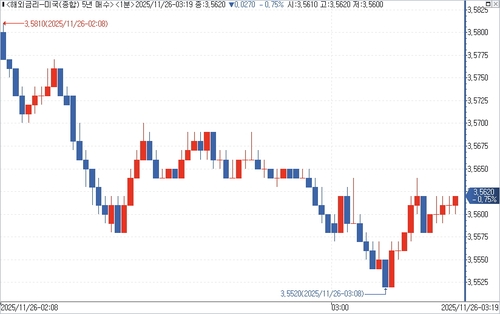 미국 재무부는 25일(현지시간) 오후 입찰을 실시한 뒤 700억달러 규모 5년물 국채의 발행 수익률이 3.562%로 결정됐다고 발표했다. 지난달 입찰 때의 3.625%에 비해 6.3p 낮아진 것으로, 작년 9월 이후 최저치다.