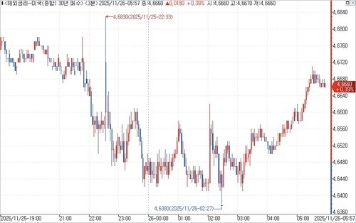만기가 가장 긴 30년물 국채금리는 4.6580%로 1.90b 하락했다.