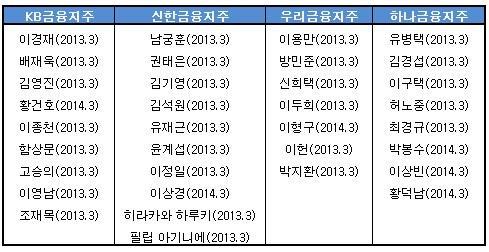 따라서 올해 5년을 채워 실질적으로 임기가 끝나는 사외이사는 함상문 KB금융지주 이사와 방민준·신희택 우리금융지주 이사, 유병택·김경섭·이구택 하나금융지주 이사 등 6명 뿐이다.